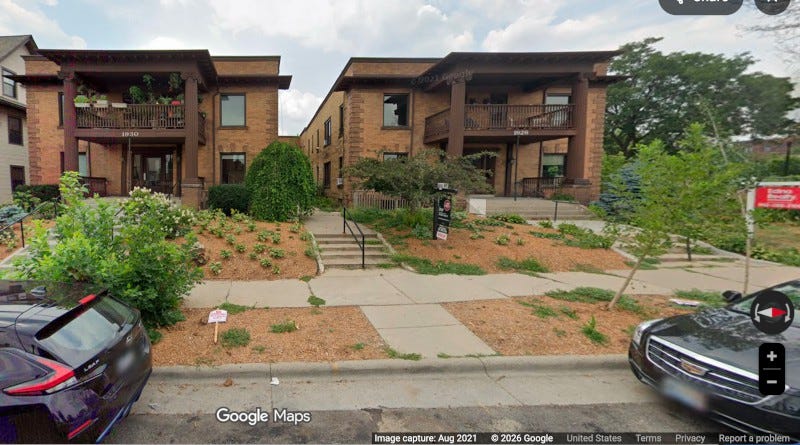 FastpeopleSearch gives his address as 1928 Aldrich Ave S, unit 104. Radaris confirms it as a recent address. But as you see, not only is there no such address, these “condos” don’t have garages. It is on- street parking. Besides, this is a poor neighborhood, and there is no way that guy is living there or ever did. This is almost the ghettoes, being right off 94, under the Hennepin off-ramp. I just did a drive- around there on Google Maps, and it literally looks like the projects. Bums walking around in wife- beaters. Nurses working long hours make very good money, as you know, so there is no reason for him to be living in the projects. Pretti has been a nurse for at least five years, so there is no reason for him to be living in squalor. His family isn’t poor. Even a college-student wouldn’t rent there, but you buy a condo, you don’t rent it. No nurse is going to buy that property, unless he is seriously strung out on meth. So again, something don’t jive here.